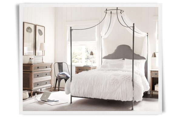 Rooms | Restoration Hardware Baby & Child from media.rhbabyandchild.com To weigh down comfort, style and durability, our furniture reviewer spent hours testing each bedframe model in the restoration hardware showroom. Restoration hardware should close its doors forever because they are nothing but stealers. Shop restoration hardware at chairish, home of the best vintage and used furniture, decor and art. Restoration hardware french iron canopy bed for $1995 vs overstock lauren upholstered canopy bed for $280 copycatchic luxe living for less budget home decor. Browse our huge selection and make an offer today! Scratches, stains, small stains, does not come with canopy, no canopy, no hardware. Restoration hardware look alike items for less beaus and. This iron canopy bed features a gorgeous white headboard and elegant white bedding.